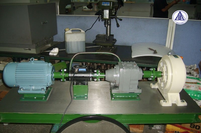 本測試臺可測量機座號150、130、110、90系列伺服電機,測量參數(shù)為轉(zhuǎn)矩、轉(zhuǎn)速、軸功率,數(shù)據(jù)采集、處理、顯示通過單片機儀表和計算機完成,
